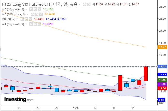 오늘 오후에도 확인하던 도중 퇴근길에 UVIX가 17불까지 오르는 것을 확인했습니다