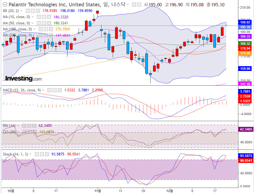 팔란티어는 210불을 넘기면 신고가가되며 목표가를 섣부르게 정하기 어려워집니다, 그럼에도 목표가를 예측해본다면