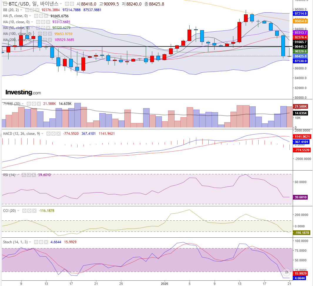 전일 트럼프의 그린란드 관세 이슈로 나스닥, 비트코인은 급락했습니다
