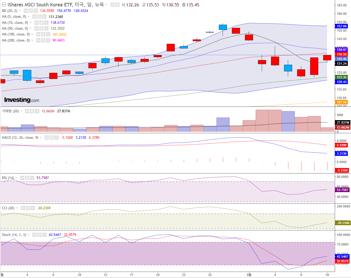 EWY의 경우 현재 장시작 1시간30분이 지난 상황이며,