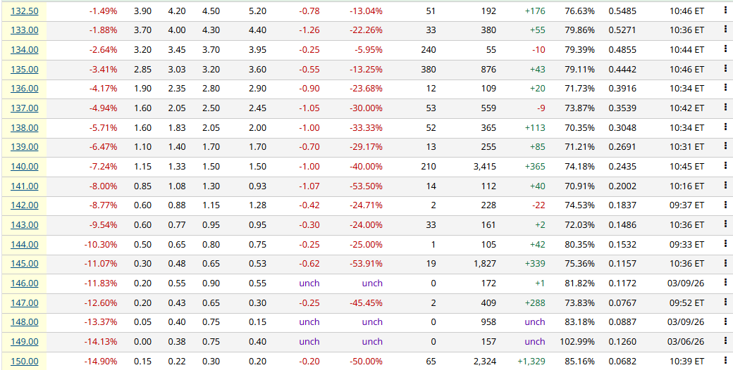 신규 OI가 가장 많기에 150 조금 안되는 가격까지도 도달할 수 있겠구나 정도 생각할 수 있습니다