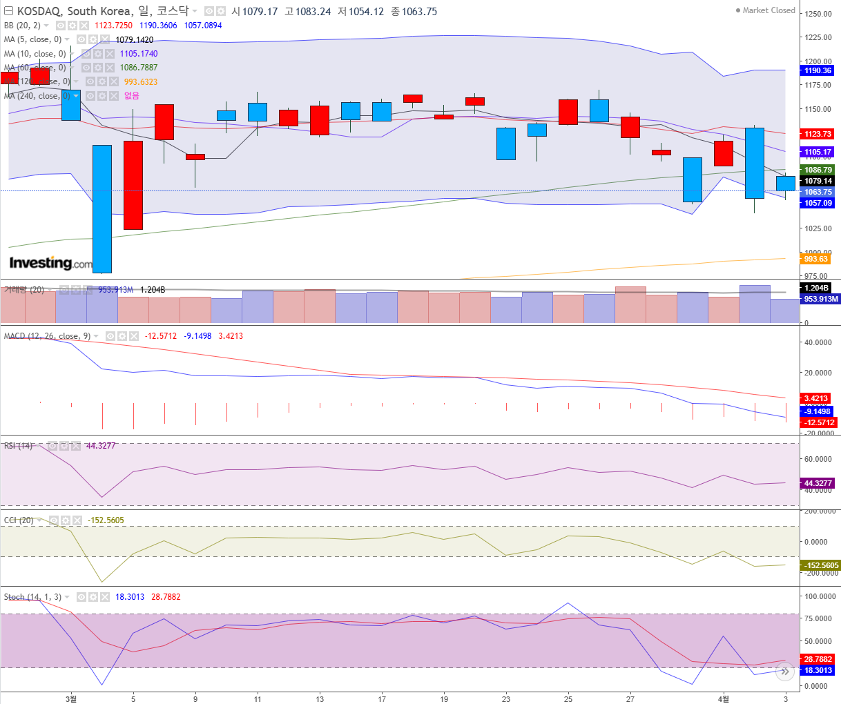 코스피 코스닥은 4월2일 나스닥의 상승에 힘입어 반등했습니다